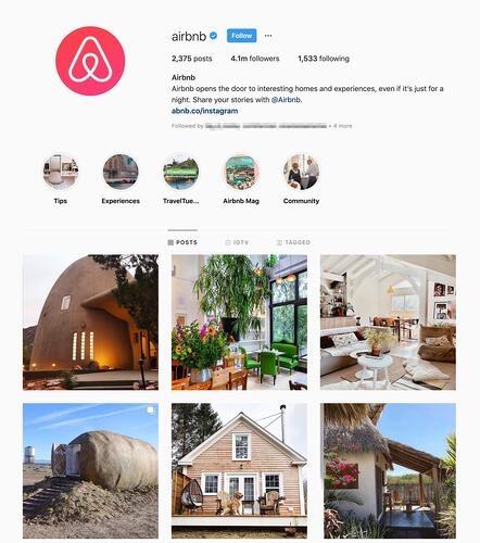 El Airbnb feed está lleno de casas impresionantes e interesantes. Esto es importante porque ese es el objetivo de su negocio. Mostrando lugares únicos para alojarse. También ayuda a que su contenido se vea profesional, en lugar de una foto que alguien tomó en su teléfono. El aspecto limpio y elegante funciona para ellos y les ayuda a atraer a su público para que reserve su próximo viaje con Airbnb.