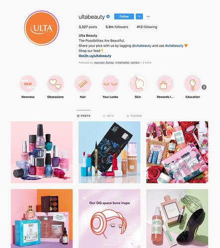 Ulta utiliza su Instagram de forma lúdica. La tienda de maquillaje no le teme al color! El uso del color puede ser una gran manera de captar la atención de un posible seguidor y conducirlo a su perfil. A lo largo de la alimentación de Ulta, verás una gran cantidad de productos de maquillaje. Al mostrar sus productos de esta manera, se convierten en una marca accesible y realista a la que le gusta divertirse cuando interactúa con su público. Su estética concuerda con todo lo que representa su marca: color y creatividad.