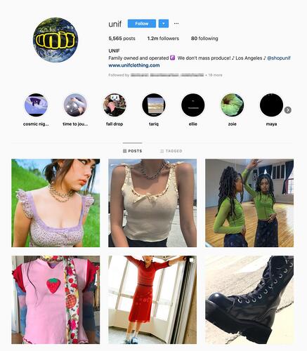 UNIF vende ropa brillante y retro. Si se desplaza por su cuenta Instagram, verá colores brillantes, muchos accesorios y estilos del pasado que han sido adaptados y reintroducidos a las generaciones más jóvenes.