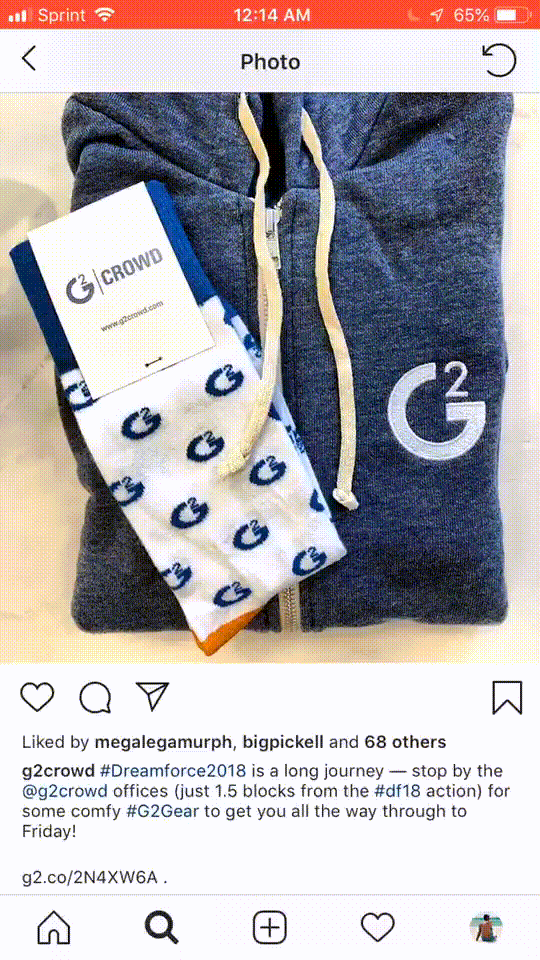 Esta vez, al puntear en el icono de marcador, en la parte inferior de la foto se muestra un mensaje para guardar en una colección. Toque esta opción y aparecerá una lista de mis colecciones. Puedo añadir esto a mi colección de Dreamforce 2018 o crear una nueva.