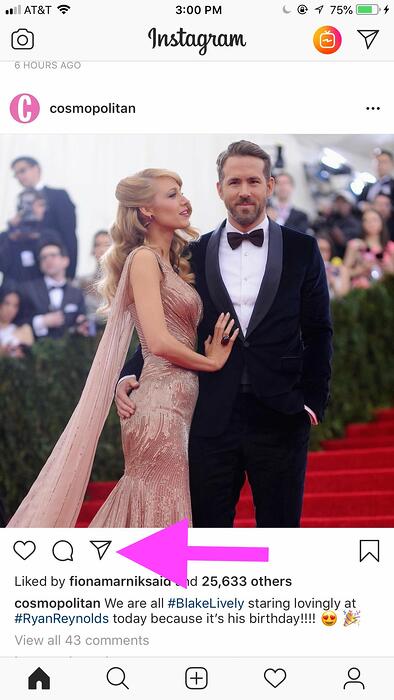 Ahora, aquí está cómo enviar un mensaje directamente desde su feed Instagram. Vamos a omitir los pasos que requieren abrir Instagram e iniciar sesión – si usted ha encontrado algo que desea compartir, podemos asumir con seguridad que ya lo ha hecho!