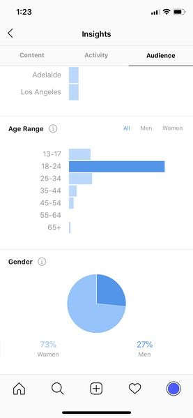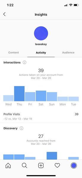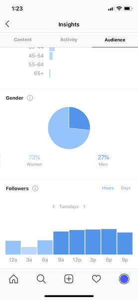 Una de las mejores maneras de saber cuándo su audiencia es más activa es mirar de cerca sus análisis de instagrams. Si usted tiene un perfil de negocio Instagram, puede ver Insights para tener una idea general de cuando su audiencia está en línea.